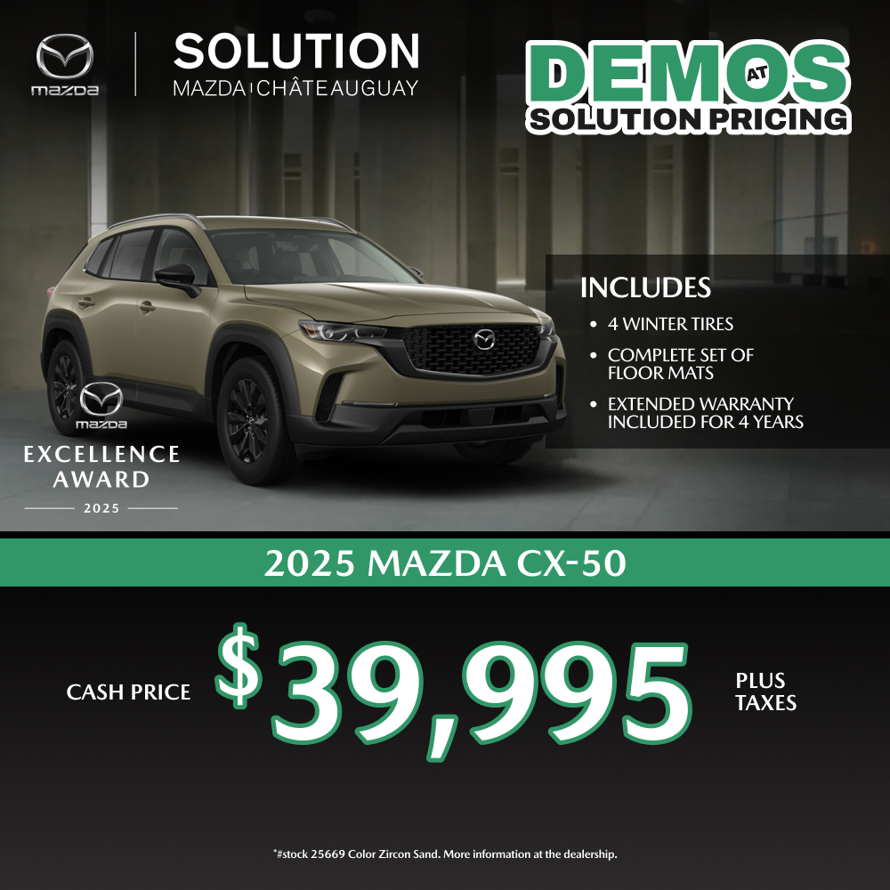 www.solutionmazda.com or just met us directly! 191 boul. St-Jean-Baptiste, Châteauguay, Quebec. J6K 3B9